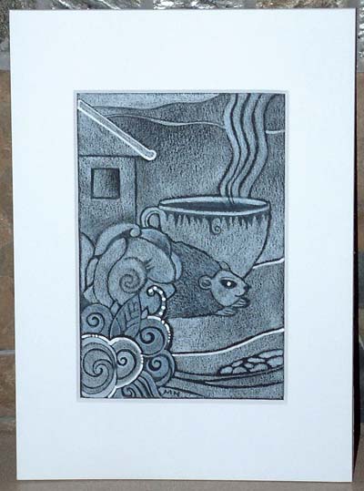 and then there is the many facets that seem to be going on. part of me wants to go deep meaningful raw art, and part of me wants to do cute little bunnies in clothes like beatrix potter did. part of me wants to paint acrylic landscapes and the other part wants pen and ink. i used to be best known for beading, and i still bead a bit, but now i find myself more drawn to work on paper and canvas. maybe i need more focus -- though i do feel i have managed to create a personal style that transcends the various media i work in.